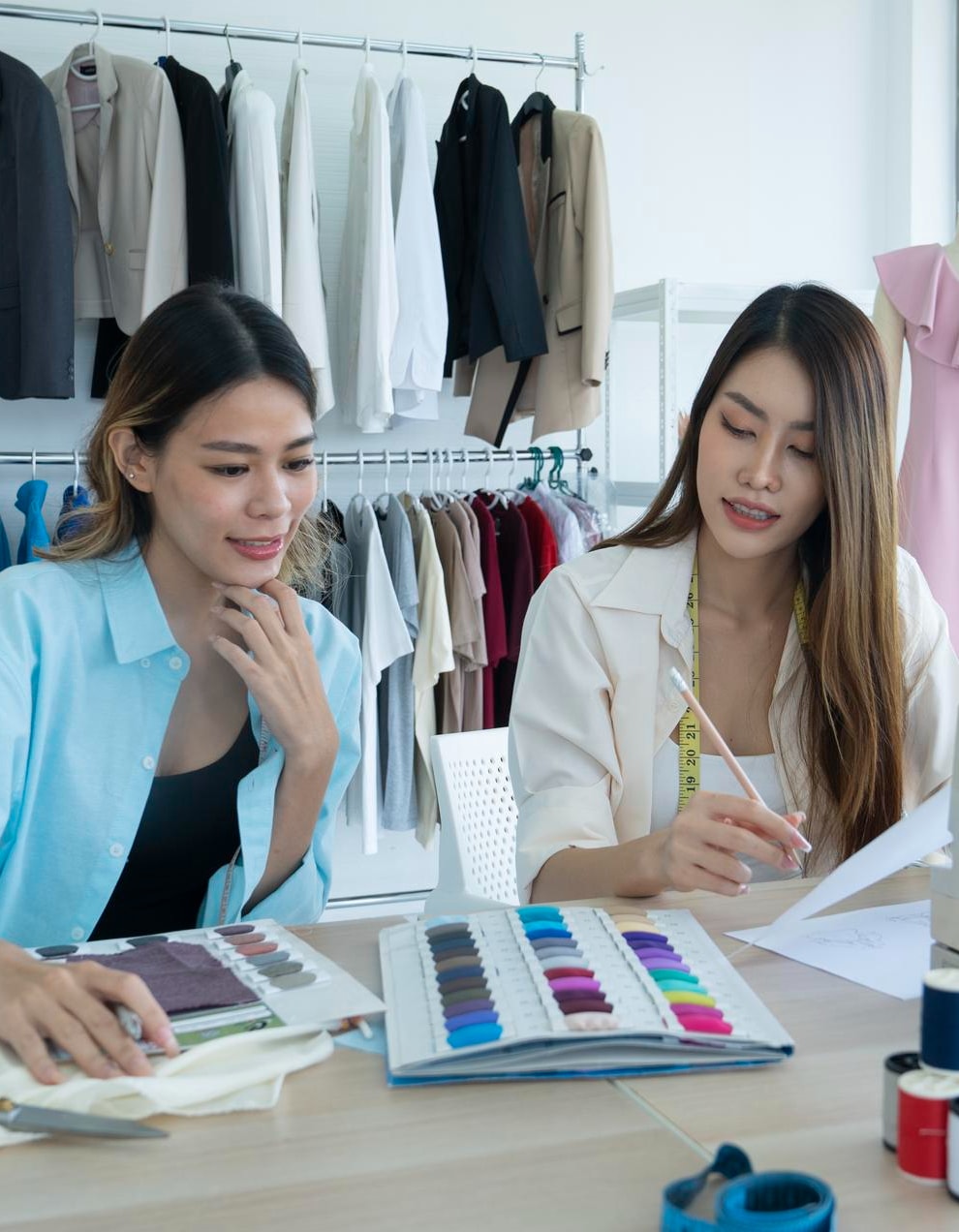 從了解屬性開始,找出您客群適合的尺寸版型,到選布與元素搭配,製作出合適的樣衣,生產出貨。